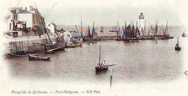 Histoire de la Presqu'îleXXème siècle Durant l'été 1900, l'écrivain breton Anatole Le Braz vient grossir les rangs des "duchentils" (c'est ainsi que les quiberonnais appellent les étrangers en vacances). Il raconte cette visite dans ses "Navigations Morbihannaises". (" An dujentil" = les gentilhommes) En 1903, Maxime Maufra, artiste peintre, ami de Gauguin, s'installe à Kerhostin dans une chaumière. Peu après il acquiert un grand morceau de terre, ancien retranchement avancé du Fort Penthièvre où il plante des arbres en plein vent. Ces grands pins forment ce que l'on appelle actuellement "le bois Maufra". Sur les six cents toiles constituant son oeuvre, Beaucoup de ses toiles (600 environ) ont été réalisées à Portivy. On peut en admirer dans une dizaine de musées de France... La tombe de Maxime Maufra se trouve dans le cimetière de St-Pierre Quiberon.- Plus sur Maufra 1902 Inauguration de la Statue de Hoche  Envisagée depuis le 26 juin 1869 l'inauguration de la statue de Hoche sera repoussée jusqu'au dimanche 20 juillet 1902. Dès le 1er juin, la Municipalité donne le nom de Hoche à la place où s'élève le monument.