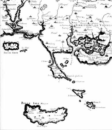| Archives départementales d’Ille-et-vilaine: Descente des anglais sur les côtes de Bretagne (1746-1754) C1083. |  | Attaque des anglais contre la ville de Lorient, pillage de Quiberon (Octobre 1746), Albert Macé, in Association bretonne, 1887, p. 230-243 / Lafoylie Vannes 1888. |  | La descente des anglais dans la presqu’île de Quiberon en 1746 - récit d’un témoin, Henry Céard, in Bulletin de la Société Polymatique du Morbihan, 1905, p. 323 / Galles Vannes 1906. |  | Les anglais à Quiberon en 1746, Colonel Juge, in Bulletin de la Société Polymatique du Morbihan, 1927, p. 34. |  | Quiberon, presqu’île au cours des siècles, Charles Floquet, Ed. Hérault 1985. |  | Vie et société au Port-Louis, Henri-François Buffet, Ed. Bahon-Rault 1972. |