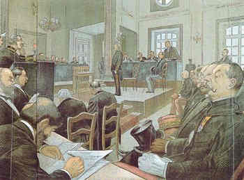 1898 Portrait d'Emile Zola>>>>>10-11 janvier: Esterhazy est acquitté à l'unanimité par le conseil de guerre. 13 janvier: Emile Zola publie J'accuse...! dans "L'Aurore". 14 janvier: des intellectuels réclament dans L'Aurore la révision du procès Dreyfus. 7-23 février: la cour d'assises de la Seine condamne Zola pour diffamation à un an de prison et 3000 F d'amende, maximum de la peine possible. 18 juillet: reprise du procès de Zola aux assises de Versailles. A nouveau condamné, le romancier s'enfuit le soir même en Angleterre afin que le jugement ne puisse lui être signifié et devenir exécutoire. 8 août: le colonel Henry avoue son faux au ministre de la guerre, Cavaignac, et il est conduit à la prison du Mont Valérien. Le général Boisdeffre démissionne le jour même. 31 août: Henry se suicide dans sa cellule du Mont-Valérien.