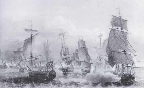 Jean Guillaume Toussaint comte de La Motte-Picquet de La Vinoyère 1720-1791 [communément nommé ‘La Motte-Picquet'] Issu d'une famille de petite noblesse et sans fortune, Le comte Toussaint-Guillaume Picquet de la Motte dit"La Motte-Picquet" fut l'un des hommes les plus braves et les plus capables de la Marine nationale. Né à Rennes le 1er novembre 1720, La Motte Picquet entre aux gardes marines de Brest en 1735, il fera toutes les mers et tous les océans. Patriote généreux, il s'illustre lors de la guerre d'indépendance des Etats-Unis . Il fait campagne successivement sur les côtes du Maroc, en Baltique, aux Antilles, aux Indes. Remarqué pour son habileté manoeuvrière, il est appelé à Paris en 1775, il y conseille le secrétaire d'Etat dans la préparation des ordonnances de 1776 qui réorganise l'administration de la Marine. Chef d'escadre en 1778, il participe à la bataille d'Ouessant (27 juillet 1778) et croise ensuite les côtes anglaises où il fait 13 prises en un mois. Au cours de la guerre d'indépendance des Etats-Unis, il se distingue particulièrement. Il rallie l'escadre d'Estaing à la Martinique en juin 1779 et prend part au combat de la Grenade et à l'expédition de Savannah. Le 18 décembre devant Fort Royal de la Martinique, il attaque audacieusement avec seulement trois vaisseaux, l'escadre anglaise de treize navires de l'amiral Hyde-Parker qui tentait de barrer la route à un convoi venant de France . L'habileté de ses manoeuvres et la rigueur de son action lui valurent une lettre de félicitations de l'amiral anglaisdu 28 Decembre: "The conduct of your Excellency in the affair of the 18th of this month fully justifies the reputation which you enjoy among us, and I assure you that I could not witness without envy the skill you showed on that occasion. Our enmity is transient, depending upon our masters; but your merit has stamped upon my heart the greatest admiration for yourself." [pp.129-130 Major Operations of the Navies in the War of American Independence by Alfred T. Mahan (1912)] .(" Quoique vous m'ayez enlevé une frégate et plusieurs autres bâtiments, je ne peux m'empêcher de vous admirer et de vous estimer " En 1786, Louis XVI commanda une peinture représentant l'engagement naval du 18 Decembrer 1779 . (gravure de Chavane d'après la peinture originale de A.I. Rossel de Cercy (1736-1804). Commandant en 1781 une division de 6 vaisseaux et 3 frégates, il intercepte le 1er mai le convoi anglais de l'amiral Rodney chargé du pillage de Saint-Eustache et enlève 26 navires. Il est nommé lieutenant général des armées navales en janvier 1782. C'est finalement en terre bretonne à Brest, que le petit chevalier devenu lieutenant général des armées s'éteint le 10 juin 1791, totalisant 52 ans de service, 34 campagnes, 10 combats et 6 blessures. (D'après la plaquette de présentation La Motte Picquet - photographie © JM Roche : buste exposé dans la coursive principale de la frégate La Motte Picquet..) |