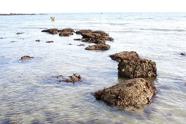 Découverte archéologique - Ma-Tvideo France3 L'équipe du CNRS qui travaille dessus depuis un an parle de découvertes majeures. Découvertes au pluriel effectuées complètement par hasard à St-Pierre-Quiberon. En fait: 5 haches datant de 5.200 avant notre ère ainsi qu'un alignement de menhirs la plupart du temps immergés. In August 2007, holidaymakers discovered two pairs of polished jadeitite axeheads that had been set vertically in gravelly silt on the beach of Porh Fetan, at a location called Petit Rohu reports the Antiquity Journal. The shape and material of these axeheads allowed them to be identified straightaway as being of Alpine origin, in common with a number of axeheads found in the region (Bailloud et al. 1995; Pétrequin et al. 1997). Archaeological fieldwork, both on the land in the vicinity of the findspot and underwater, was subsequently carried out by the Laboratory of Archaeological Research (CNRS – Nantes University), in order to examine the context of the findspot and to try to delimit the extent of the site.  Initial fieldwork, carried out during the September spring tide, yielded no further artefacts but did produce evidence for at least one submerged stone alignment (image on the right), located to the south-east of the axehead findspot and several dozen metres away. Only one of the stones was still standing; the others had fallen. An initial plan of this structure was made at that point, and completed during the next investigation, which took place during the October spring tide. The structure is readily distinguishable from a more recent stone structure, relating to fishing, located 800m away. A third investigation, carried out during the last spring tide of the year in November, led to the discovery of a fifth axehead, this time of fibrolite, found resting against one of the fallen stelae.  <<Antiquity Journal Peaty soils had been intermittently observed over several years, buried beneath marine sand; these are being progressively eroded away by the force of the sea, as their sand cover becomes thinner (image to the left). These soils preserve marks, criss-crossing each other in places, which relate either to cultivation or to salt extraction; and there are also hoof-prints of ungulates (cattle and pigs). This palaeoenvironmental context allows us to argue that the axeheads had been deposited in a marshy environment that had developed behind a dune system, at the foot of a remarkable granite outcrop. Sea level rise since the mid-fifth millennium BC – the likely date at which the axeheads were deposited – means that the shore has advanced by some 500m since then (Cassen & Pétrequin 1999). Today, the findspot of the stone alignment and axehead deposit lies beneath 5m of sea (image to the right). These architectural vestiges join the list of recent discoveries (since 1998) of submerged monuments in the Bay of Quiberon, the Etel estuary and the Gulf of Morbihan. Of particular note is the site of Kerbougnec, several hundred metres to the north of Rohu, where a dozen lines of fallen stones, extending over at least 400m, have been found under the sea (Cassen & Vaquero Lastres 2003). This site is comparable in stature to the Carnac alignments. At the foot of the largest stela (8m long), a fibrolite axehead was found in 2006, in conditions similar to those obtaining at Petit Rohu. Initial spectroradiometric analysis of the two pairs of axeheads, undertaken as part of the Agence Nationale de la Recherche-funded Programme Jade (2007–2009; directed by Pierre Pétrequin and involving Serge Cassen, Michel Errera & Yvan Pailler), has confirmed that they are of jadeitite, originating in the Italian Alps. Indeed, at least three of the axeheads (Nos. 1–3, image at the top) certainly originated in the same block of jadeitite. Their surface finish attests to a considerable investment of time in order to achieve their mirror-like polish (which survives over part of their surfaces). This underlines the fact that these were not utilitarian axeheads, but instead were very special and precious artefacts. To summarise: this discovery on the Quiberon peninsula lends credence to several ancient accounts of other discoveries, which had previously been hard to validate from recent observations. It also allows us to gather and reassess information about Alpine axeheads within several investigative domains, namely: - Burial in a marshy context. The practice of depositing hoards of polished axeheads in wetland contexts is attested by many examples in Europe (Pétrequin et al. 2005). Marshy ground is the milieu par excellence for ensuring the transition between states of being and between this world and the Otherworld.