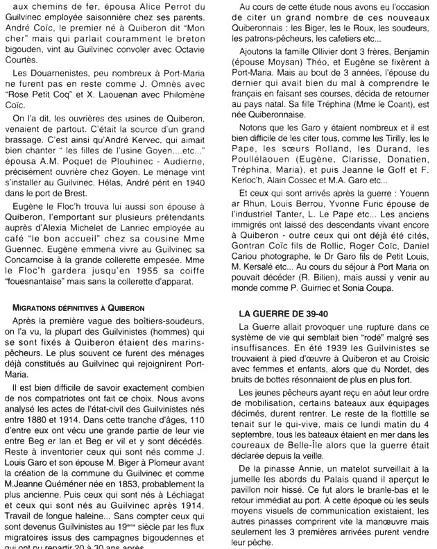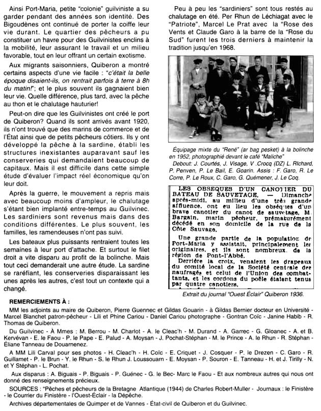 Histoire de la migration des guilvinistes à Quiberon Pages du bulletin municipal du Guilvinec N° 1997 aimablement transmises par la conserverie La Quiberonnaise 7